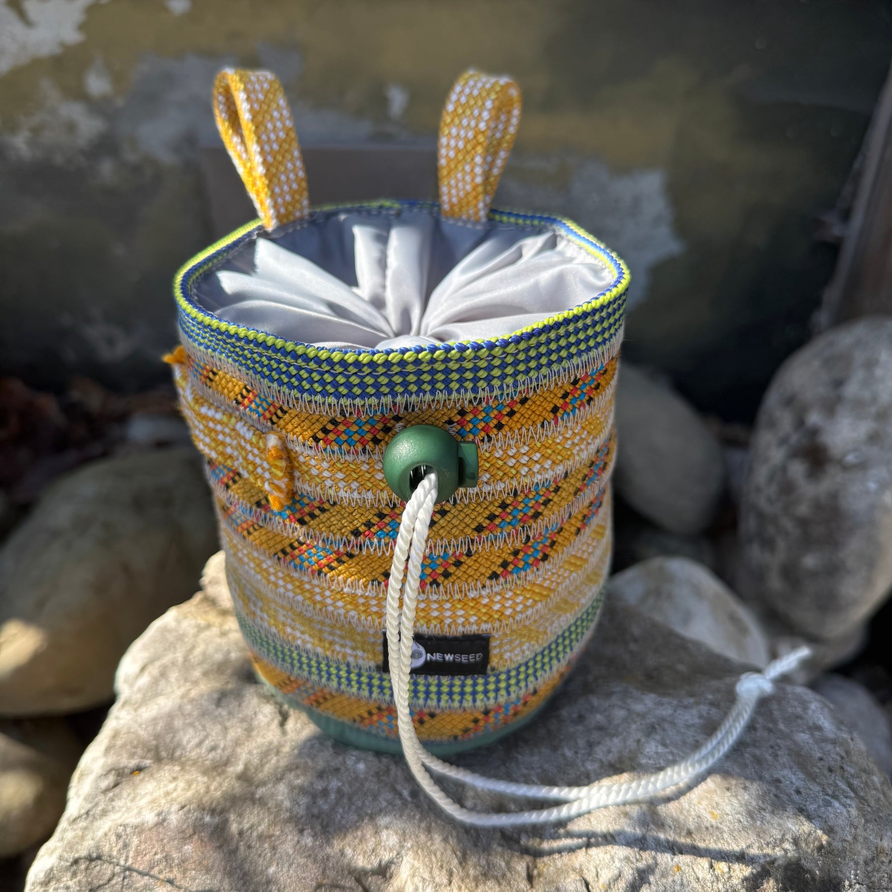 Nicht jedes Stück Kletterequipment erzählt seine Geschichte so klar. Dieser Chalkbag besteht aus einem Kletterseil, das draußen genutzt wurde und nun weiterverwendet wird. Kein neues Material, keine künstliche Patina – sondern echtes Upcycling.