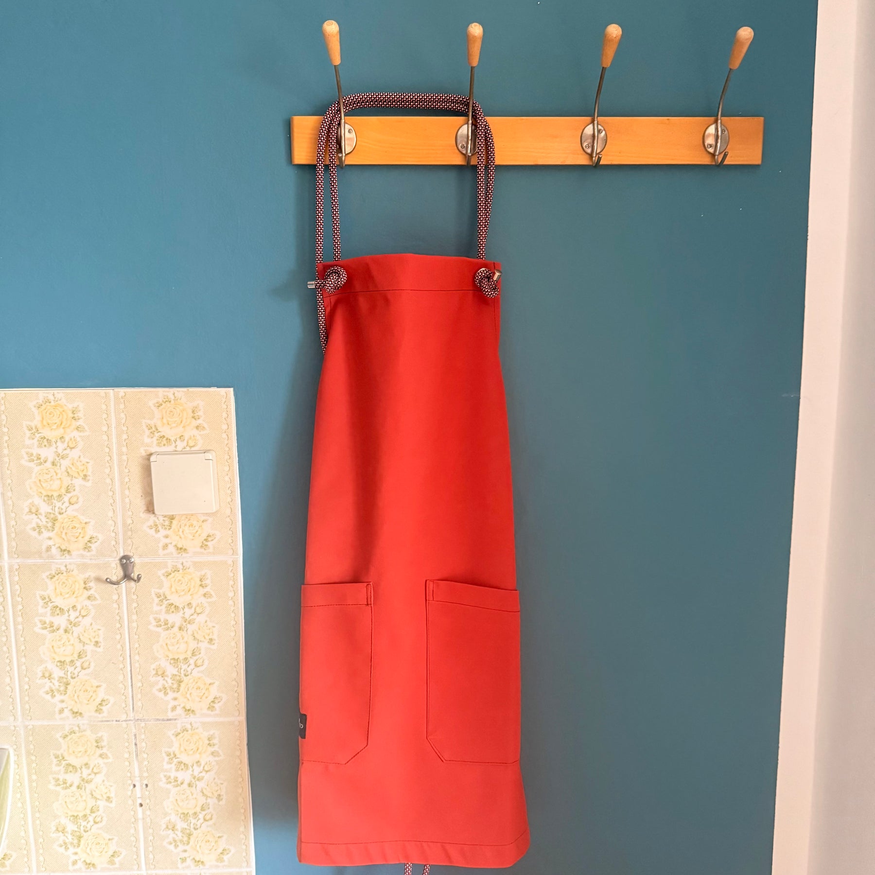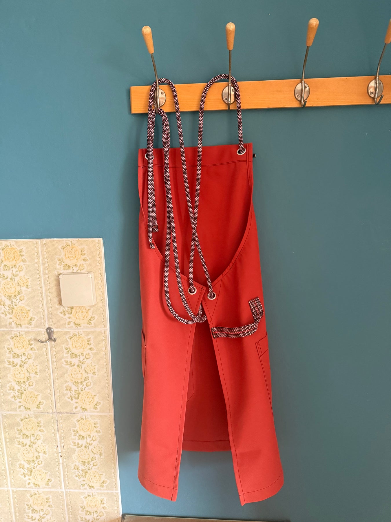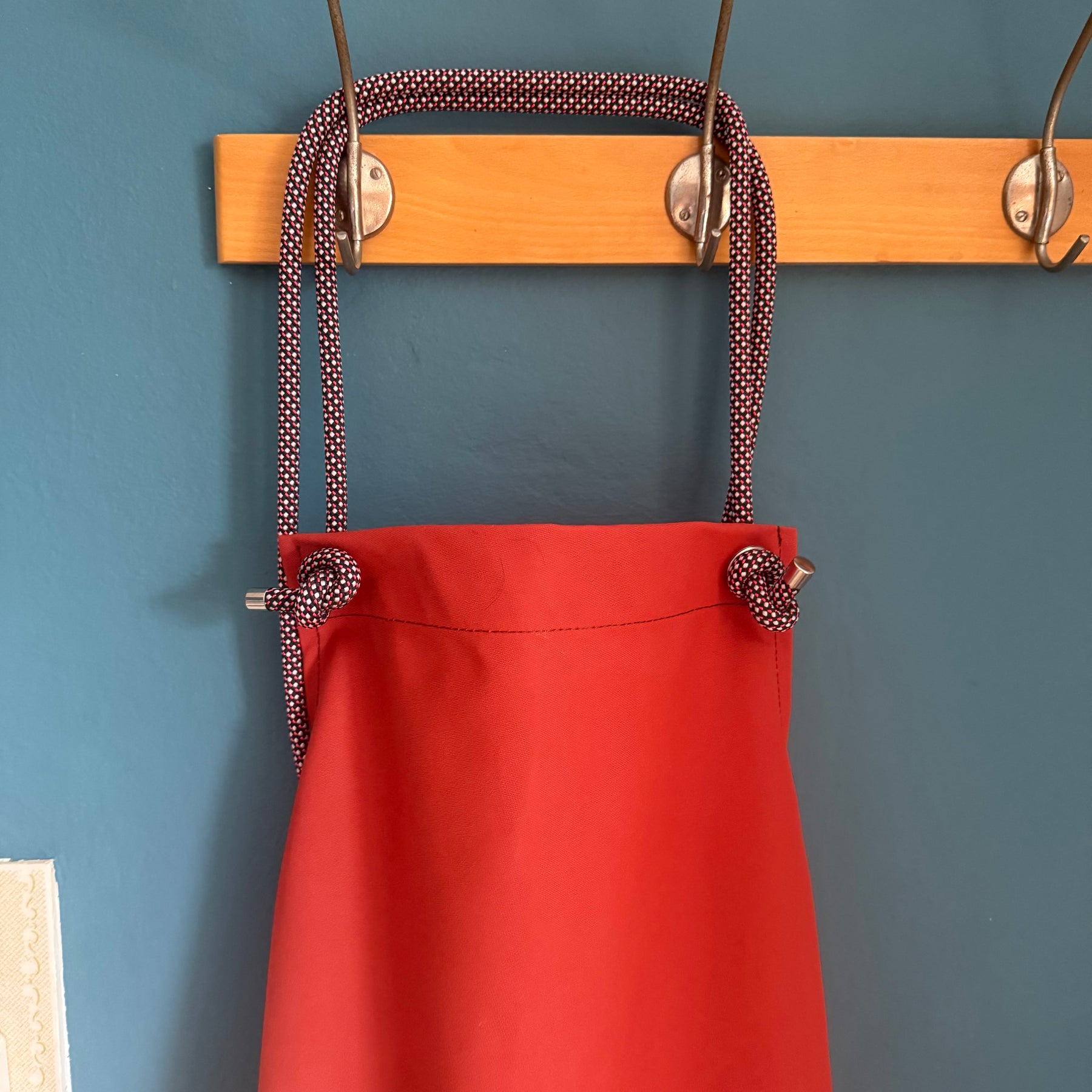 Dank des ausgeklügelten X-Träger-Designs am Rücken sitzt die Schürze besonders angenehm, entlastet den Nacken und sorgt für einen lässigen, zeitgemäßen Look. Die Kletterseil-Bänder ermöglichen ein variables Binden – vorne für sehr schlanke Personen und hinten für etwas korpulentere. Dadurch ist die Schürze flexibel an nahezu jede Figur anpassbar und eignet sich ideal als unisex Modell.